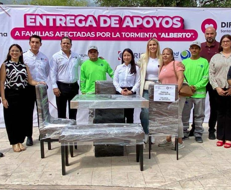 Abriendo su corazón y extiendo la mano amiga, el personal de Santa Catarina comenzó este jueves con la entrega de enseres domésticos. Abriendo su corazón y extiendo la mano amiga, el personal de Santa Catarina comenzó este jueves con la entrega de enseres domésticos a afectados por tormenta «Alberto». Es así que el Gobierno de Santa Catarina, a través del DIF municipal y con el apoyo de la Iniciativa Privada, entregó apoyos de enseres domésticos a 65 familias afectadas en su patrimonio, en junio pasado, tras el paso de la tormenta tropical «Alberto». Con la instrucción del Alcalde Jesús Nava Rivera, en la Explanada de la Torre Administrativa, la presidenta del DIF, Paola García Yves, acompañada de funcionarios municipales y directivos de empresas locales, como FRISA y Red Ambiental, encabezó la entrega de comedores, estufas, refrigeradores y bases de colchón para vecinos de la Colonia El Escorial. «Hemos trabajado día y noche, tras la contingencia, para apoyar con agua a familias y ahora se suma esta ayuda con enseres domésticos, no están solos y aquí es cuando debemos estar más unidos que nunca», señaló a beneficiarios la titular del DIF Santa Catarina. Expresó que la administración municipal encabezada por Jesús Nava Rivera sigue trabajando para revertir los problemas generados por la tormenta tropical «Alberto», como fue la falta de agua y afectaciones patrimoniales. Durante el acto protocolario, García Yves hizo entrega de los enseres domésticos a familias beneficiadas, las cuales reconocieron la solidaridad del Municipio, luego de resultar afectados por el fenómeno meteorológico. Asimismo, agradeció a Red Ambiental y Frisa, empresas privadas que mostraron solidaridad con santacatarinenses, al donar enseres domésticos, para canalizarlos a afectados en esta contingencia.
